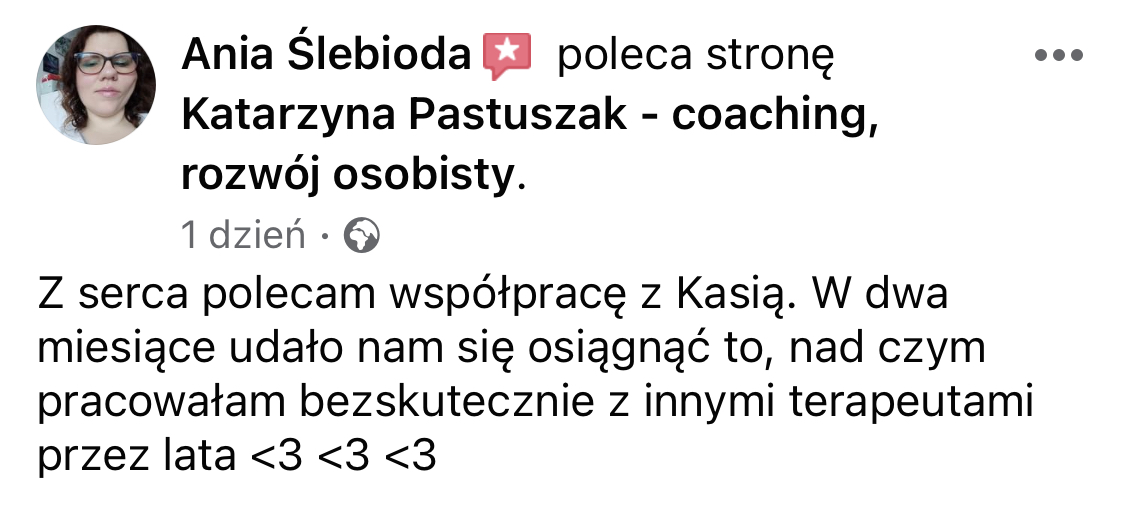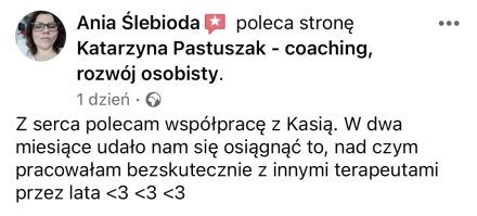 Pracuję w nurcie systemowym, ale czerpię z różnych źródeł, np. z narzędzi coachingowych, które pomocne są chociażby w pracy z niewspierającymi przekonaniami.